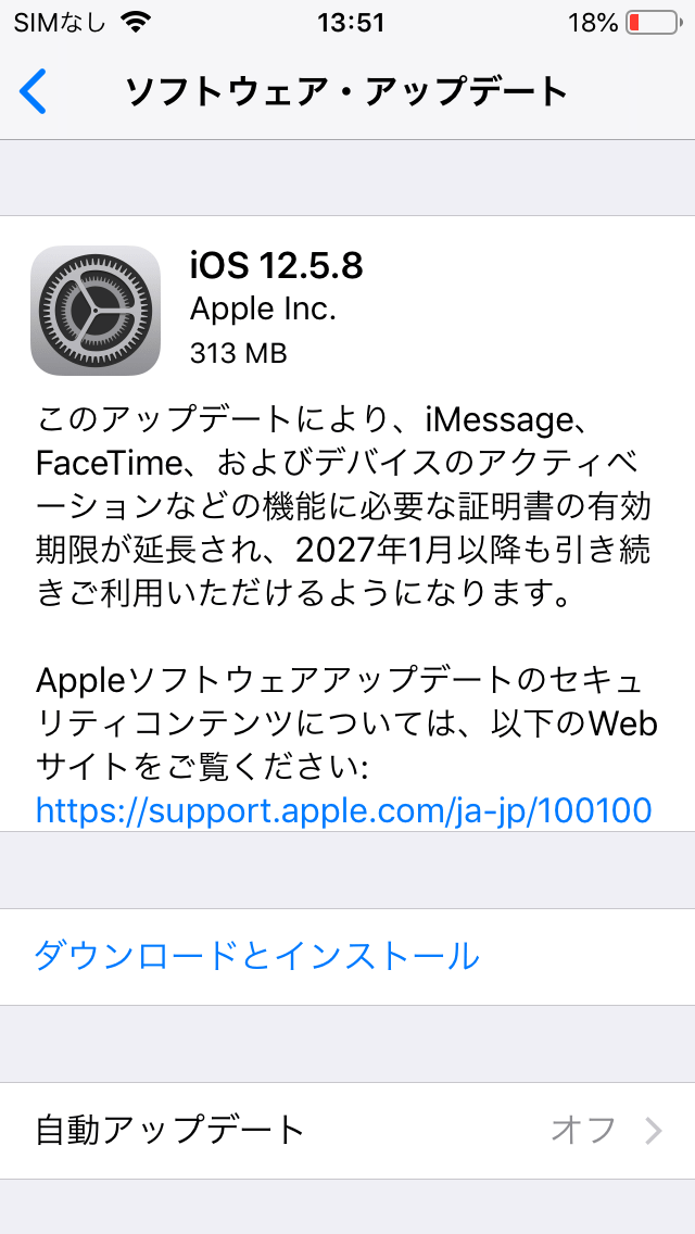 2026年に配信されたiOS 12.5.8では、iMessage、FaceTime、デバイスのアクティベーションなどの機能に必要な証明書が拡張されており、これらの機能は2027年1月以降も引き続き機能するようになるとのことです。