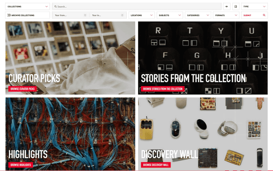コレクションを検索できるほか、「CURATOR PICKS」「STORIES FROM THE COLLECTION」「HIGHLIGHTS」「DISCOVERY WALL」の4つのトピックから見ていくこともできます。