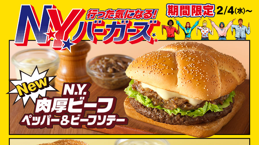 ファストフードチェーンのマクドナルドに2026年2月4日(水)から期間限定で、ニューヨークをイメージした「N.Y. 肉厚ビーフ ペッパー&ビーフソテー」「N.Y. ジューシーチキン ホット&ペッパー」「N.Y. タルタルシュリンプ ガーリック&バジル」、そして朝マック限定の「N.Y. ソーセージ ペッパー&ビーフソテーマフィン」と夜マック限定の「N.Y. ダブル肉厚ビーフ ペッパー&ビーフソテー」の計5種が登場します。特製の四角いバンズを使用し、見た目にもスタイリッシュなニューヨークをイメージしたバーガーシリーズとのことです。