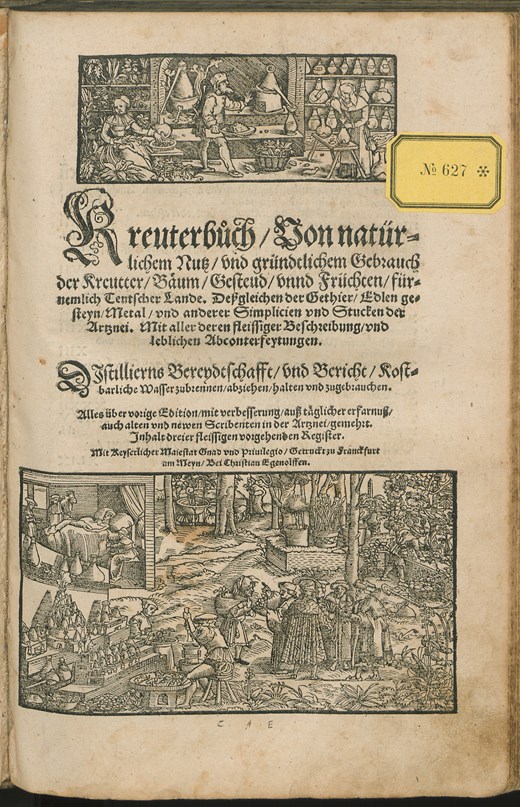 この本は当時の出版市場で成功を収め、別の都市で再版や改版が続きました。扉絵の図柄が他の本でも使い回されるほど影響が広がったとされます。以下は後年に出版された薬草書にデザインが転用された扉絵です。
