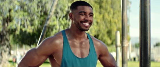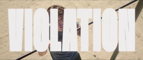 懸垂をしている男性の姿に重なる「VIOLATION(侵害・違反)」の文字。