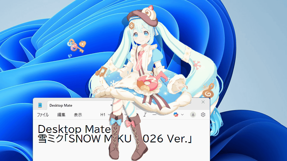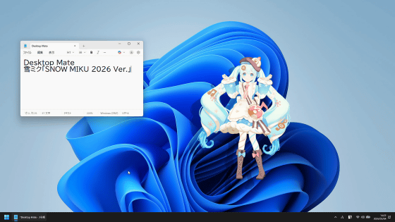 デスクトップ上にキャラクターを配置できるアプリ「Desktop Mate」のDLCとして「雪ミク SNOW MIKU 2026 Ver.」と「雪ミク JRタワー Ver.」が2026年2月5日に登場しました。どちらも公式監修ボイスと専用モーションを楽しめるとのことなので、実際に使ってみました。