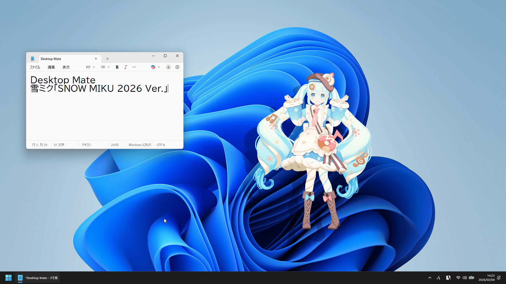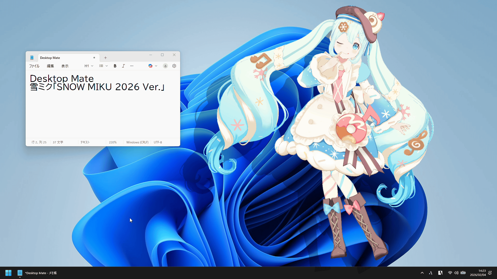 2026年版の雪ミクをデスクトップに呼び出せる「Desktop Mate 雪ミク『SNOW MIKU 2026 Ver.』DLC」レビュー