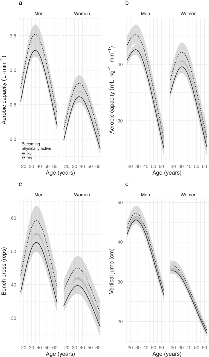 研究チームは「ピークが何歳か」だけでなく、同じ年齢でも能力水準に差が出る点にも目を向けています。研究チームは、16歳時点で余暇の身体活動があった参加者では観察期間を通じて有酸素能力・筋持久力・瞬発力が高めに保たれたと述べています。