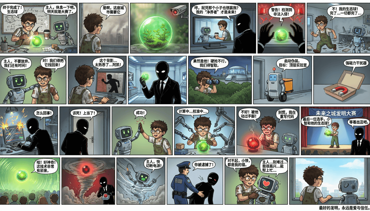 さらに、各コマのセリフや構図を指定しつつマンガを生成することも可能。
