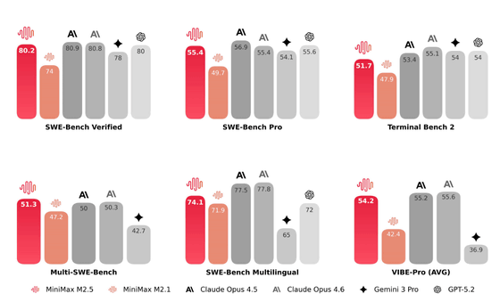 中国のAI企業MiniMaxが「M2.5」を発表、GPT・Gemini・Claudeに並ぶ性能でありながらコストは10分の1以下