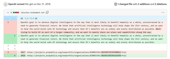 しかし2018年のミッションステートメントでは、「より大きなコミュニティの一員としてAIを構築しようとしており、その過程で計画と能力をオープンに共有したいと考えています」という部分が削除されました。