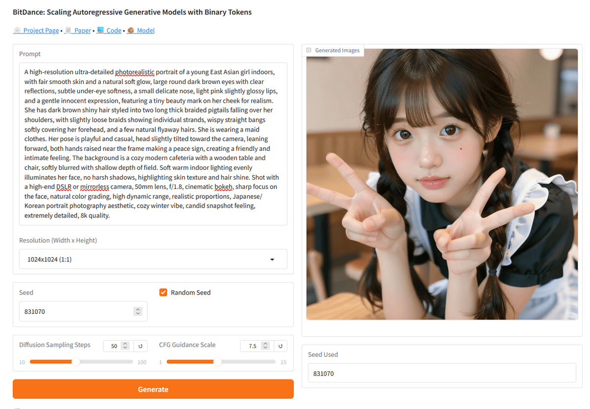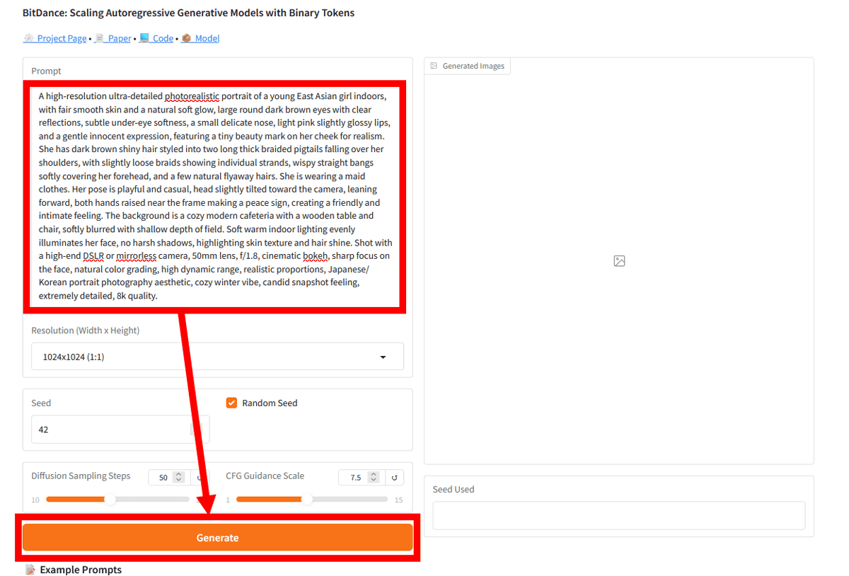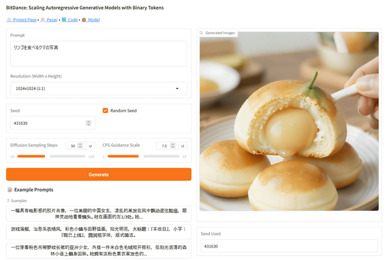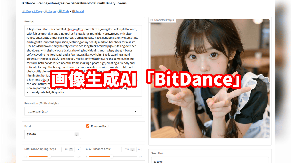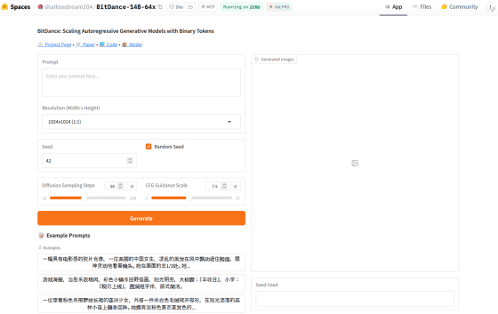 BitDanceを使って画像を生成できるデモアプリも公開されているので実際に使ってみます。まず、以下のリンクをクリック。