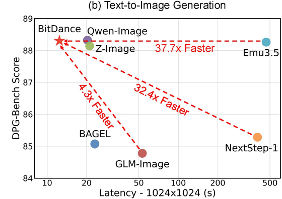 TikTokの開発元であるByteDanceや香港中文大学などの研究チームが画像生成AIモデル「BitDance」を2026年2月17日に公開しました。BitDanceは画像生成AIで主流な拡散モデルではなく自己回帰モデル(ARモデル)を採用しており、競合モデルと比べて高速かつ高品質な生成処理が可能とアピールされています。