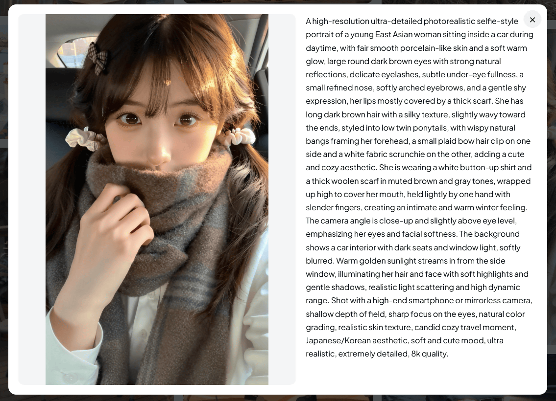 BitDanceで生成した画像とプロンプトをまとめたギャラリーページも用意されています。以下の作例を見ると、自然言語での指示に応じて高品質な実写風画像を生成できることが分かります。