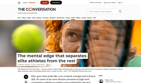オリンピック選手やプロ選手として活躍するエリートアスリートについて、多くの人は「身体能力やパワー、技術力がすごいのだろう」と考えているはず。ところが、トップレベルの試合で勝敗を分けるのは身体能力だけではなく、ある「精神的な能力」も関係しているとのこと。カナダのマクマスター大学で認知科学について研究しているマロリー・テリー氏が、エリートアスリートが持つ特殊な能力について解説しました。