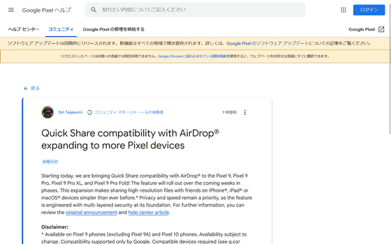 Quick Share compatibility with AirDrop® expanding to more Pixel devices - Google Pixel コミュニティ