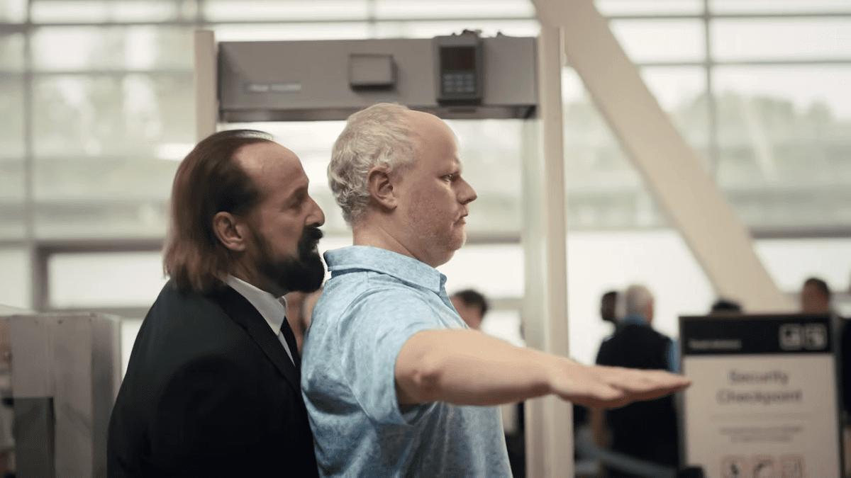 男性保安検査員が男性の乗客に「お前は無作為に選ばれた。壁に向かえ!」と発言