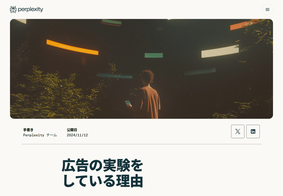 Perplexityが2024年に導入した広告を2025年末から段階的に廃止、AIへの信頼を損なうため今後も展開予定はなし