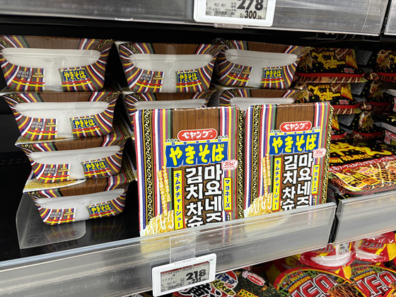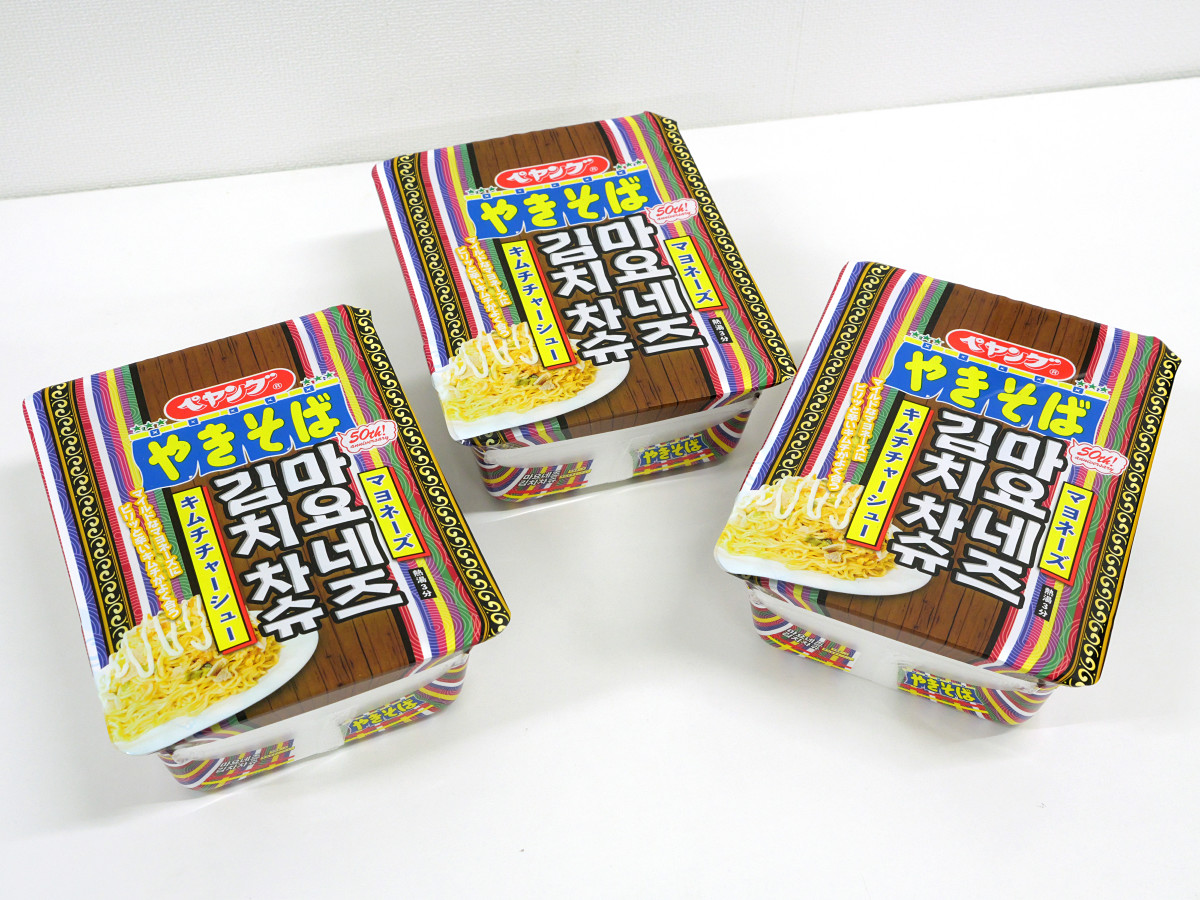 スーパーマーケットの即席麺コーナーでペヤング マヨネーズキムチチャーシューやきそばを発見。