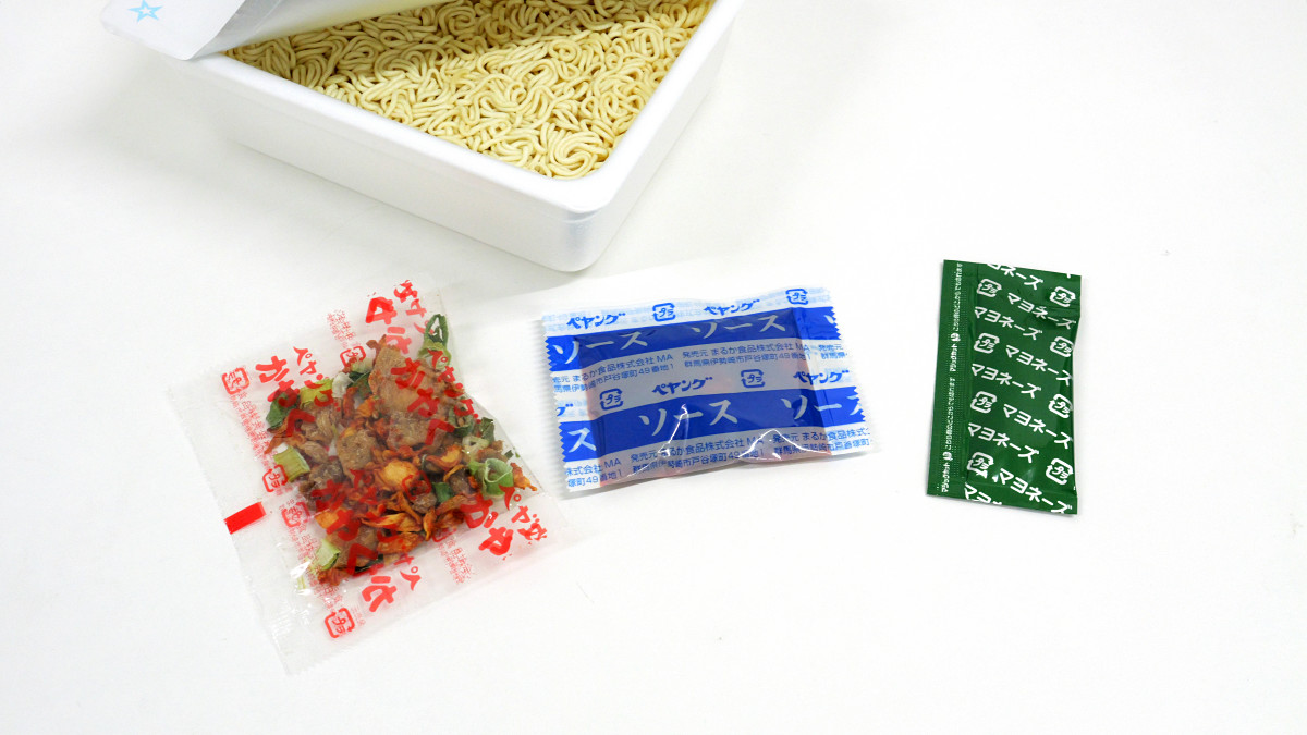 容器の中にかやくとソースとマヨネーズが入っていました。