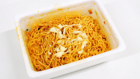 男梅のすっぱさが際立つ「日清焼そばU.F.O. ぶっ濃い男梅焼そば」&「0秒チキンラーメン 男梅味パウダー付」試食レビュー - GIGAZINE
