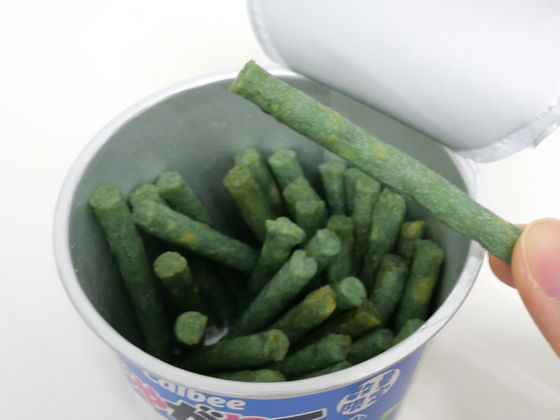 順番に食べてみます。まずは「青いじゃがりこ」から。