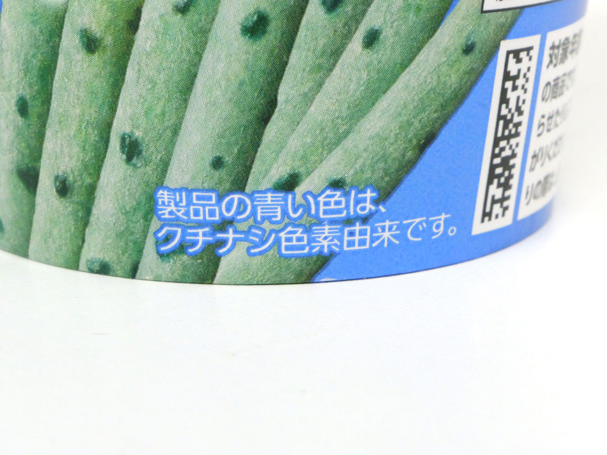 「製品の青い色はクチナシ色素由来です」と記載があります。