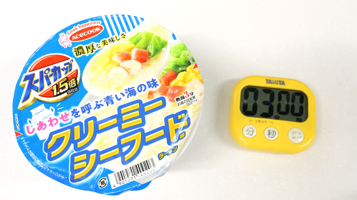 続いてエースコックのクリーミーシーフードラーメンを試食します。