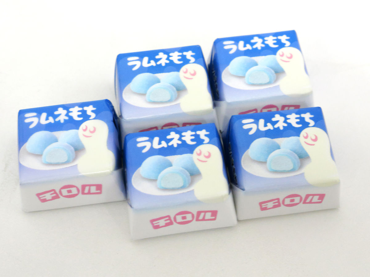 ・「チロルチョコ しあわせを呼ぶ青いラムネもち袋 5個入」(税込108円)