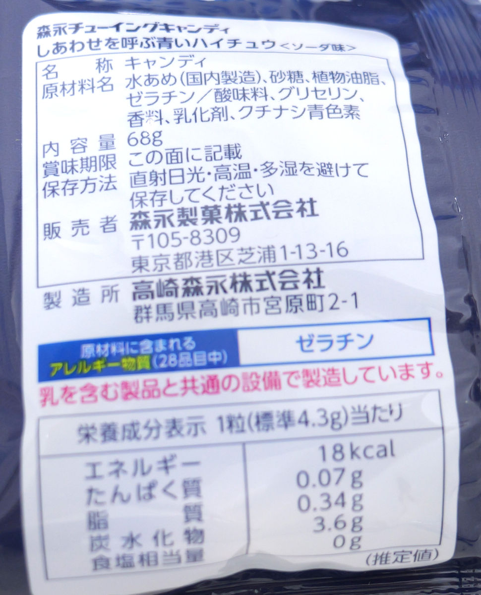 ・「森永製菓 しあわせを呼ぶ青いハイチュウ ソーダ味 68g」(税込248円)