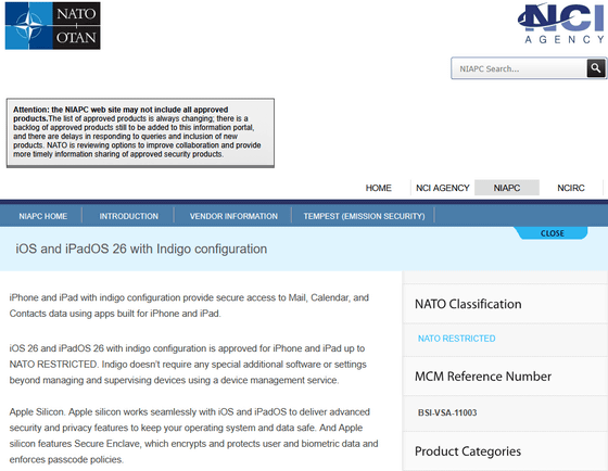 iPhoneとiPadはドイツの情報セキュリティ庁(BSI)によるセキュリティテストを受け、NATOの機密情報を扱えるデバイスとして認定されました。NATOの承認済み製品ページには「iOS 26やiPadOS 26はAppleシリコンとシームレスに連携し、OSとデータを安全に保つための高度なセキュリティ機能とプライバシー機能を提供する」と記されています。