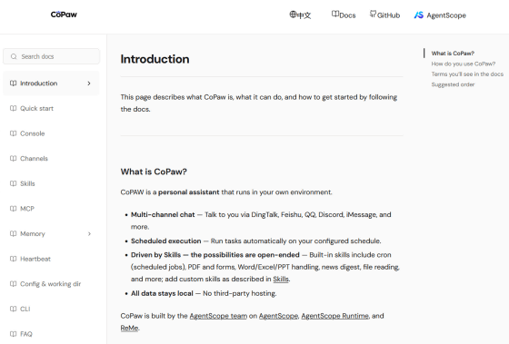 https://copaw.agentscope.io/docs/intro