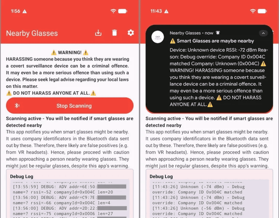 Ray-Ban MetaやSpectaclesのようなスマートグラスは、普通のメガネによく似ており、その存在を知っていてもぱっと見では見分けがつかないことが多いです。しかし、スマートグラスでは手軽に動画の撮影が可能であるため、「気付かないうちにスマートグラスに盗撮されていた」といったケースが今後増加する恐れがあります。そんなスマートグラスの存在を検知・警告してくれるアプリが登場しました。