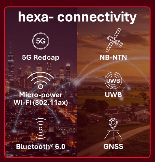 5G RedCapやWi-Fi、Bluetooth 6.0での無線通信に対応しているほか、衛星経由の位置情報取得も可能です。