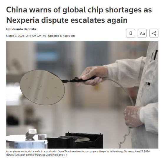 2026年3月7日(土)、「オランダの半導体メーカーであるNexperiaと中国子会社の間で起きた新たな対立により、世界的な半導体サプライチェーン危機が再び発生する可能性がある」と中華人民共和国商務部が懸念を表明しました。
