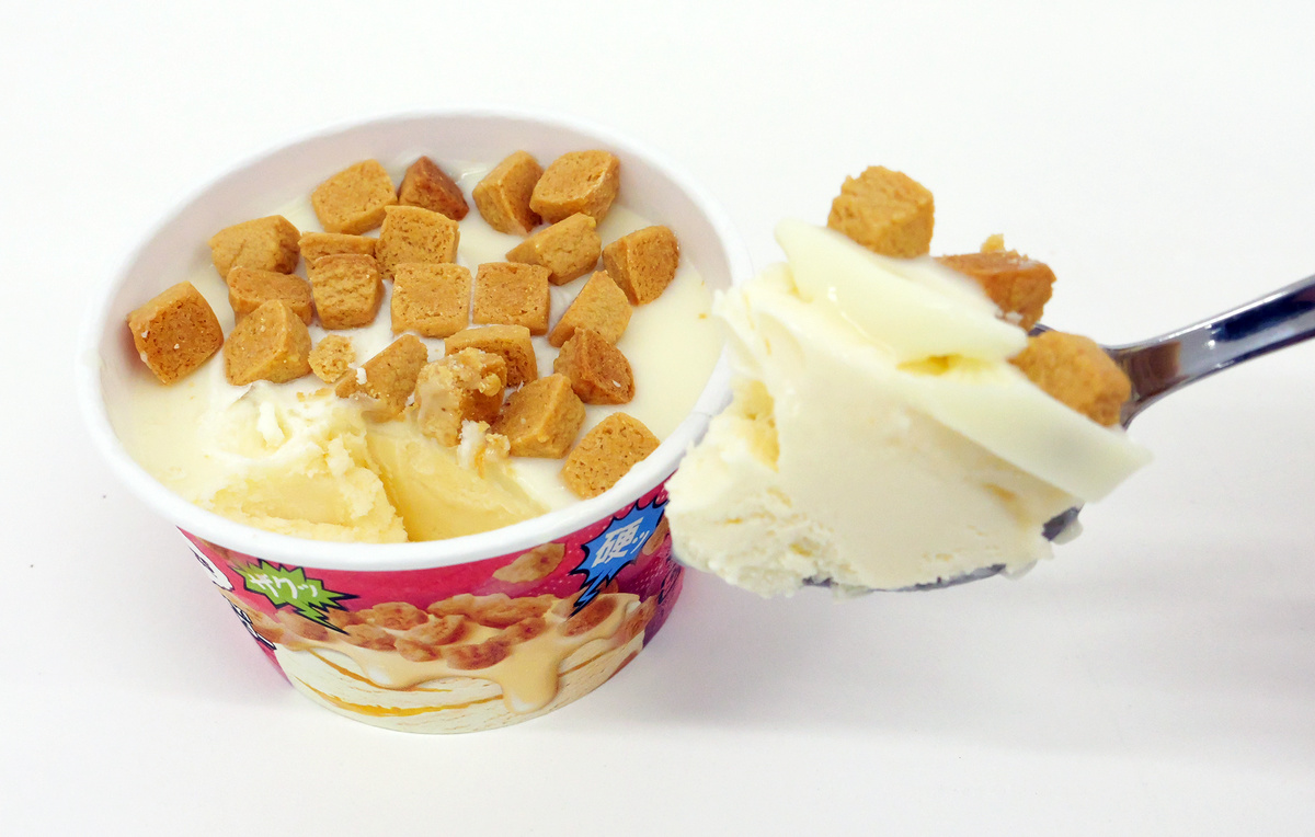 ROCKY CRUNCHY!ソルティハニーバターのアイスはハニーソース入りのバタースカッチアイスクリームで上質な甘い味わいといった感じですが、トッピングのクッキーはほどよい塩味が含まれているため、甘過ぎることなくどんどん食べ進めたくなるアイスでした。アイスクリームにもクッキーにもバターが使われているため、バターの味わいが口の中にしっかり広がります。