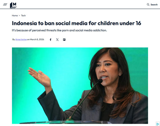 2026年3月6日、インドネシアのメウティヤ・ハフィド通信・デジタル大臣が16歳未満の子どもによるSNSの使用を禁止すると発表しました。この禁止措置は3月28日から施行される予定です。