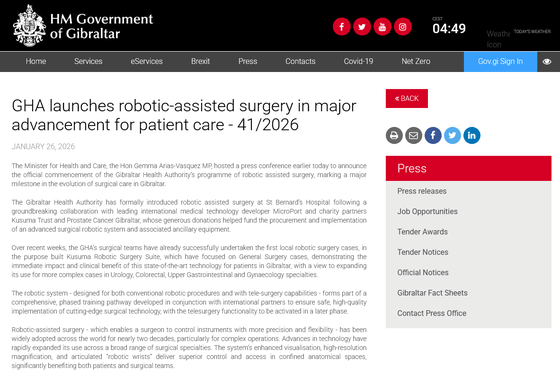 セントバーナード病院はジブラルタルにある唯一の総合病院で、ジブラルタルでは2026年1月からロボット支援手術プログラムが正式にスタートしています。