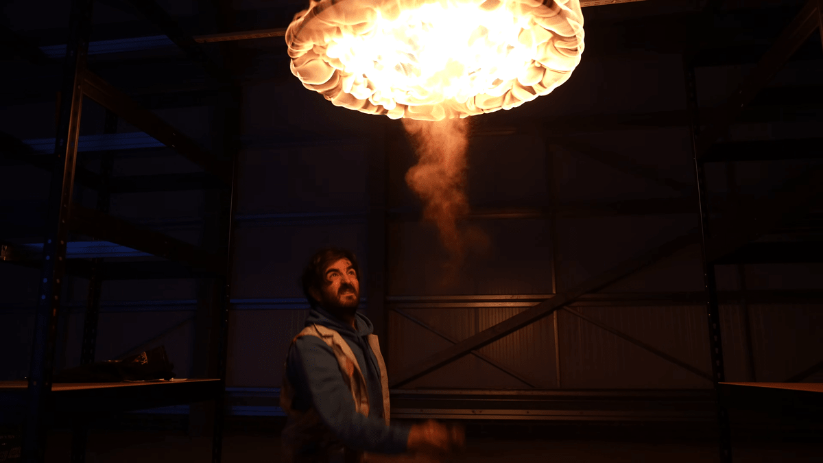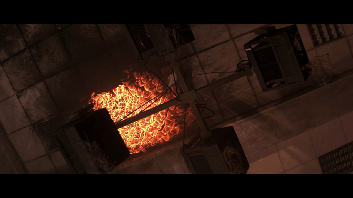 「炎を下から見る」というのは、ギャブが子どもの頃に見た「007/ゴールデンアイ」のワンシーンを再現するものです。