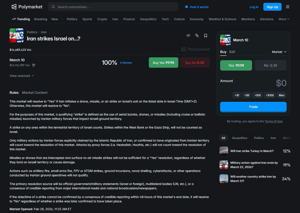 — Polymarket (@Polymarket) March 16, 2026