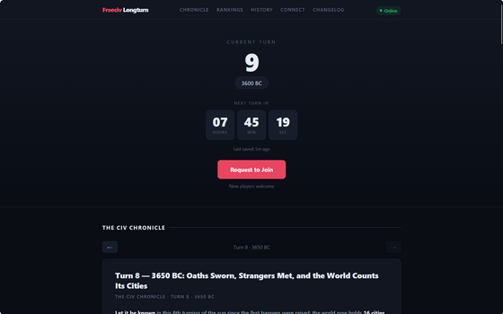 2026年3月、アプリケーションをデプロイできるテストプラットフォーム「Fly.io」上でFreecivをホストするプロジェクトがスタート。Longturnのルールを採用し、記事作成時点で16人が参加したゲームが進行中です。