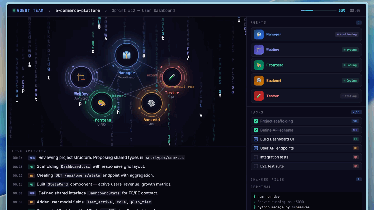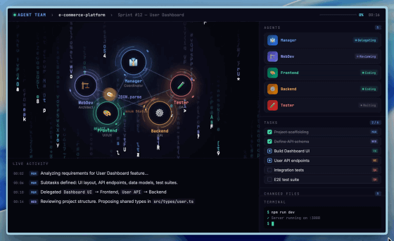 MiniMax M2.7は複数のエージェントを同時に実行するエージェントチームにネイティブ対応していることも大きな特徴です。MiniMaxによると、各エージェントに異なる役割を与えるエージェントチームの仕組みはシステムプロンプトの工夫だけでは実現できず、AIモデルの開発段階でネイティブ対応する必要があるとのこと。MiniMax M2.7のエージェントチーム機能はMiniMaxの製品開発でも用いられているそうです。