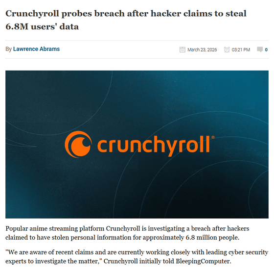 2026年3月19日、脅威アクターがセキュリティ関連メディアのBleepingComputerに連絡を取り、「Crunchyrollのサポート担当者が利用しているOktaアカウントにアクセスした後、3月12日21時にCrunchyrollのシステムに不正アクセスした」と主張しました。