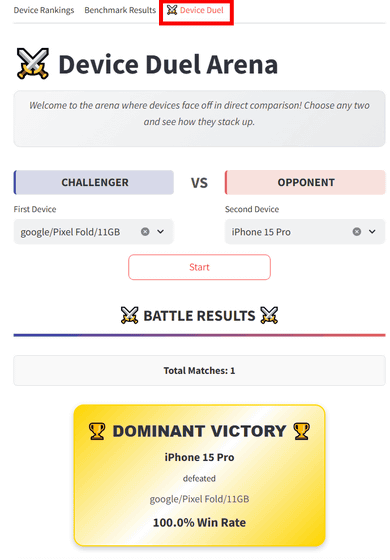 なお、Device Duelの項目ではデバイス同士の結果を比較することができました。