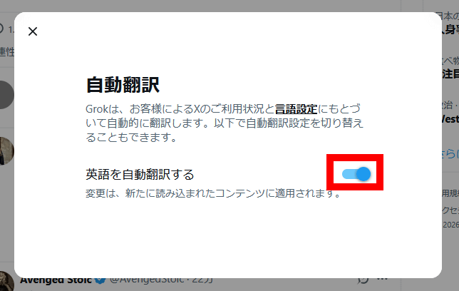 Xの外国語ポストが自動で日本語に翻訳されるように、設定から無効化も可能