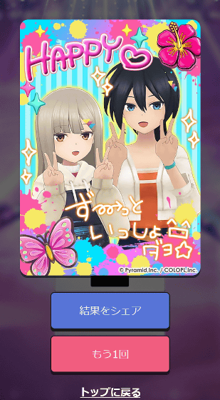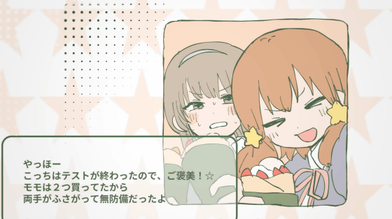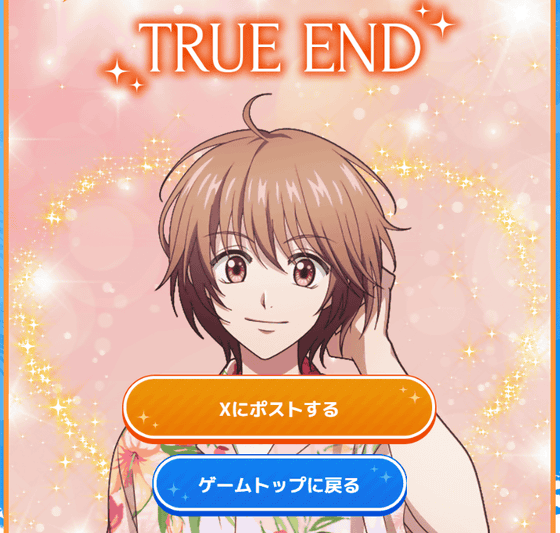 選択肢を数回選んで各キャラクターたちと交流することができます。キャラクターの機嫌を損ねたらバットエンド、高感度をアップできたらトゥルーエンドとなります。