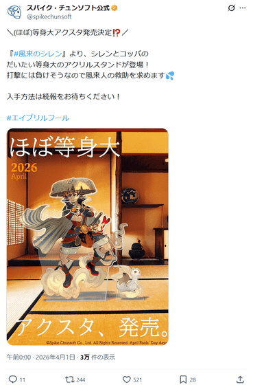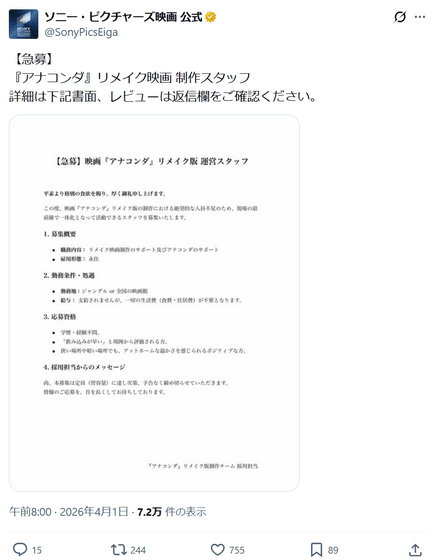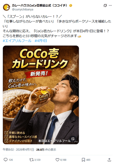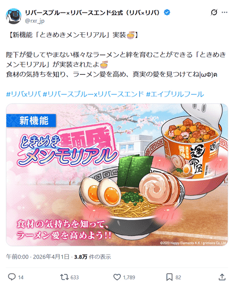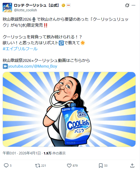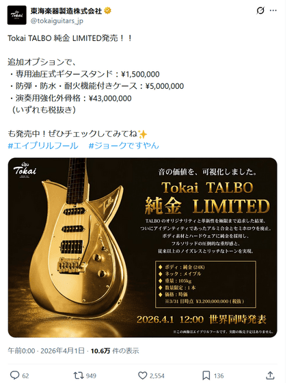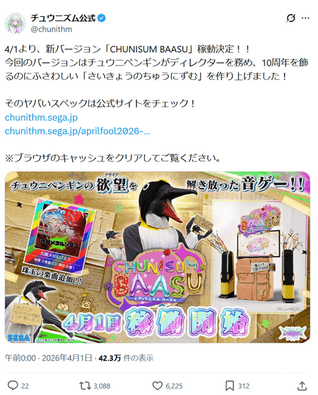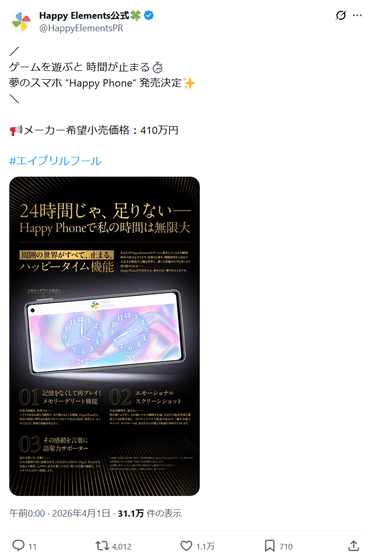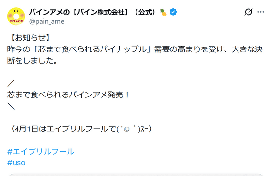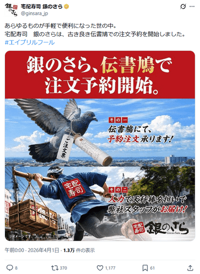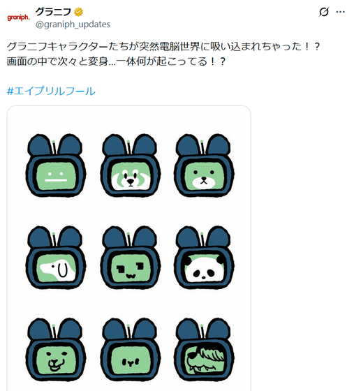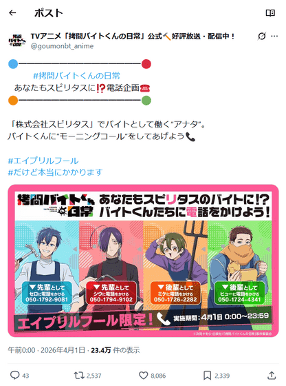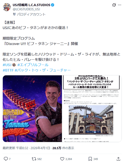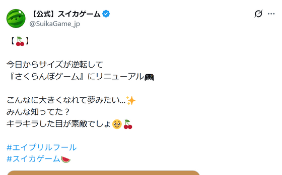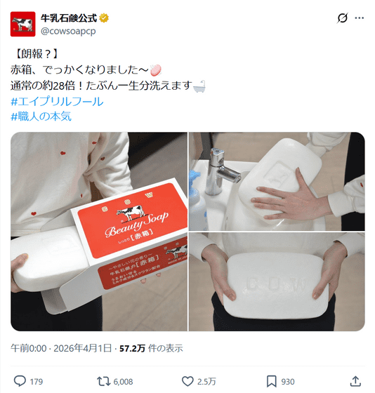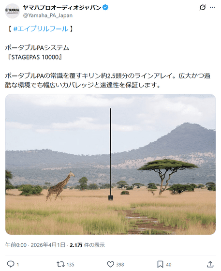 GIGAZINE編集部はエイプリルフールに便乗していろいろなことをしている各サイトを4月1日0時~24時まで、文字通りフル全力の編集部員総出で24時間リアルタイムライブ実況更新し続け、あなたが今見ているこの記事にまとめてドンドン追加し続けます。時間の経過とともに新情報が続々とこの記事に追加されていき、とんでもない長さになっていきます。「ページを再読み込みして、追加があるかどうか確認するのは面倒だ」という場合に便利なのが、GIGAZINEのX/旧Twitter公式アカウント・Facebook公式アカウント、Discord公式アカウント、Bluskey公式アカウントです。更新通知の投稿が時々されますので、フォローしておくと今後もいろいろお役立ちです。