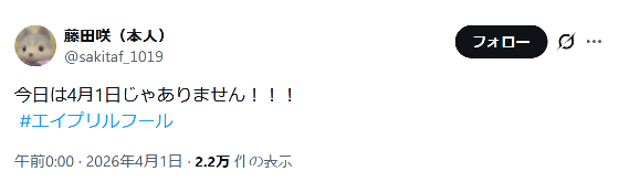 親愛なる読者の皆さま、毎年おなじみエイプリルフールが今年も始まりました!何もかもがネタまみれになる1日の始まりです!わーわー!