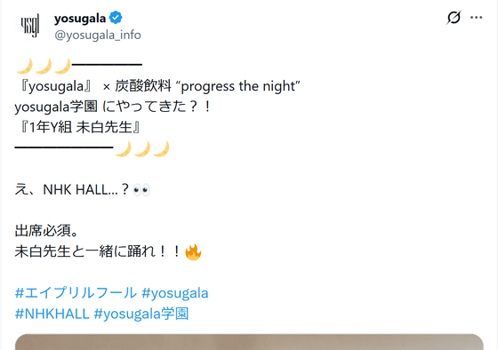 アイドルグループ「yosugala」の公式Xアカウントが架空の炭酸飲料「progress the night」とコラボして「アイドルがyosugala学園にやってくる」という内容の動画を投稿しました。