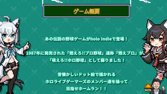 ホロライブプロダクションの二次創作ゲーム向けブランド「holo Indie」に「萌えろ!!ホロ野球」が登場しました。