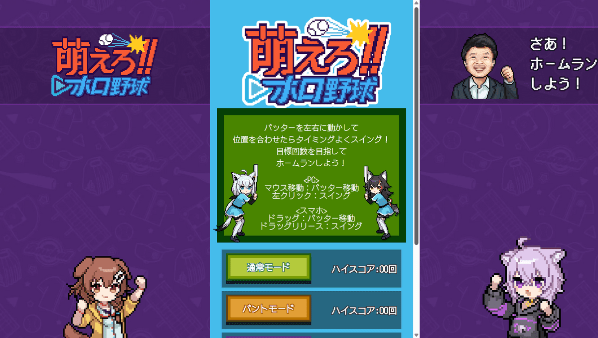 ブラウザでプレイすることが可能。PCの場合はマウスでバッターを移動してクリックでスイングです。スマートフォンの場合はドラッグでバッターを移動して指を離すとスイングしてくれるとのこと。