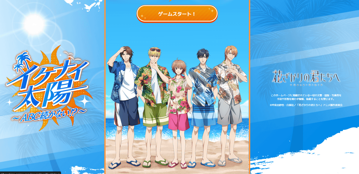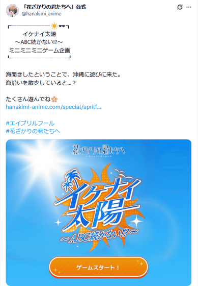 「花ざかりの君たちへ」の公式Xが、限定ミニミニミニゲームの「イケナイ太陽~ABC続かない!?~」を公開しました。
