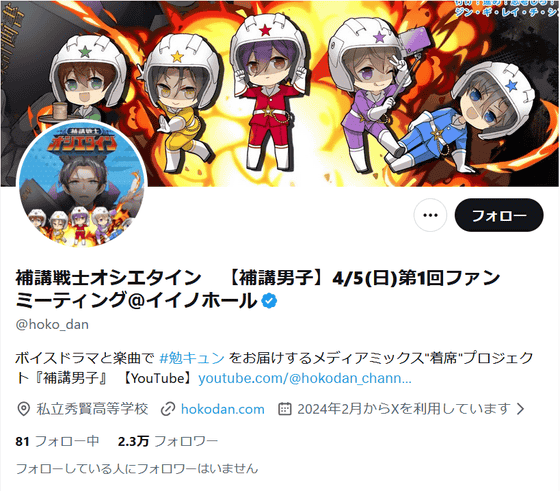 勉強を教えてくれるイケメンたちのボイスドラマシリーズ「補講男子」の公式Xアカウントが戦隊ヒーローの「補講戦士オシエタイン」に大変身していました。
