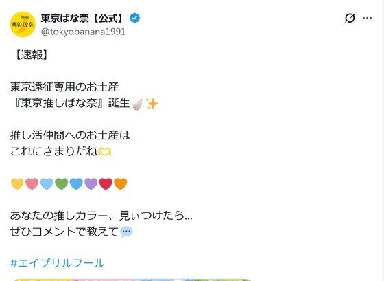 東京ばな奈の公式Xアカウントが推し活で遠征しに来た人向けの商品「東京推しばな奈」を発表しました。